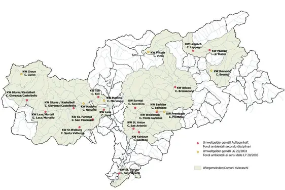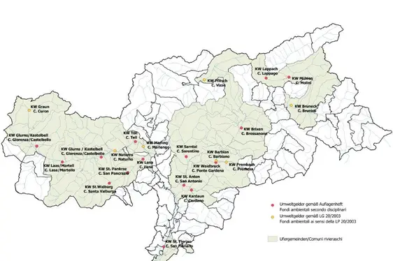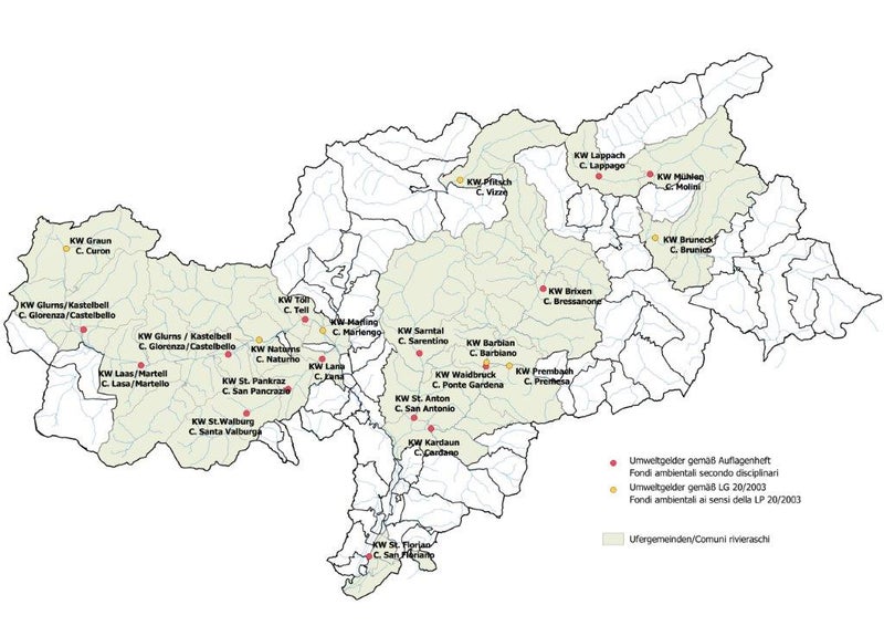 Ufergemeinden: Glurns, Graun i. V., Kastelbell-Tschars, Laas, Latsch, Mals, Schlanders, Schluderns