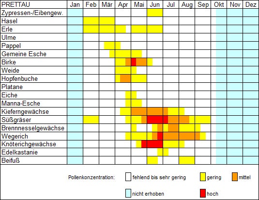 Die vom Polleninformationsdienst Südtirol ausgearbeiteten Pollenflugkalender von Prettau/Ahrntal, Grub/Langtaufers und Sulden bieten eine Übersicht der in höheren Lagen im Allgemeinen zu erwartenden Pollenbelastung und helfen bei der Urlaubsplanung.