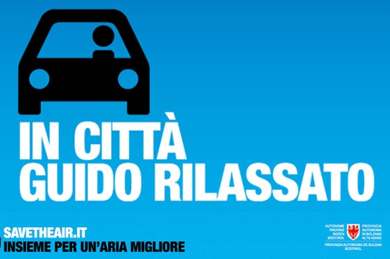 “Save the Air - Insieme per un’aria migliore” è una campagna informativa volta a sensibilizzare i cittadini sull'importanza di tutelare il “bene comune aria”, inteso come risorsa limitata da salvaguardare il più possibile. Un’aria sana è fondamentale per la nostra vita ed il nostro benessere. Se non si respira non si vive! Con l’aria inquinata si vive male! La campagna ha come obiettivo principale la riduzione delle emissioni di biossido di azoto (NO2) in Alto Adige. Migliorare l’aria nella zona in cui si vive si può! Come? Attraverso un utilizzo consapevole dei mezzi di trasporto individuali a motore.
